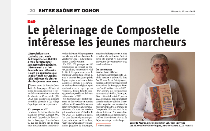 Madame le maire et le président de Destination 70, pour les « institutionnels », les présidents et représentants des associations jacquaires, romieuses et de randonnée invités ont tous salué le travail réalisé par l’AF-CCC et résumé les réalisations et projets de leurs instances.