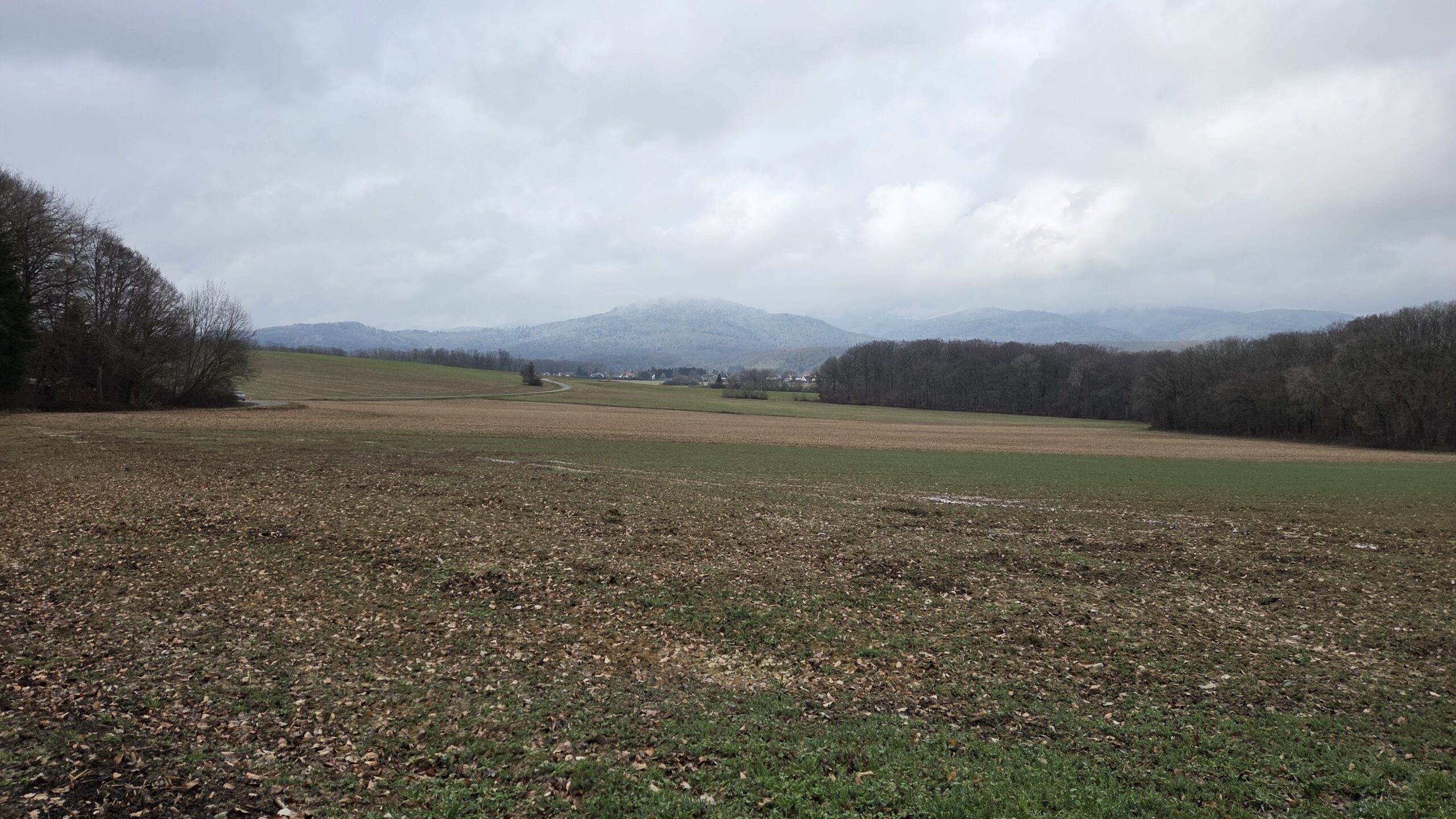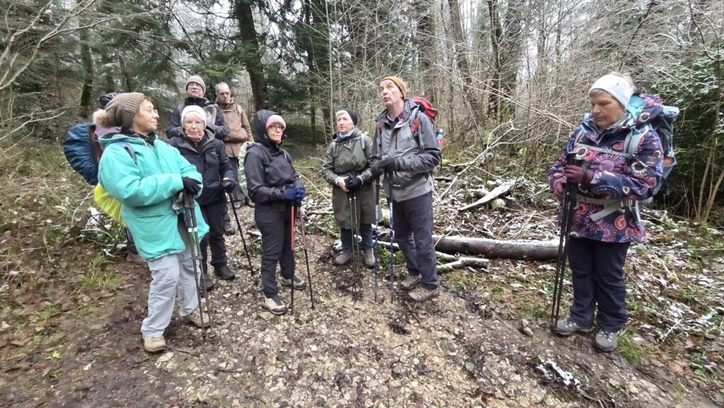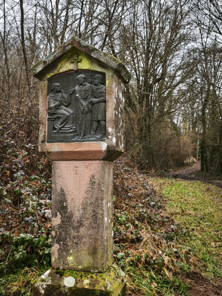 Après un départ pile à l’heure, nous avons contourné Lauw par le nord et sommes passés à côté du sentier géologique pour rejoindre le chemin de croix du Rollenberg.