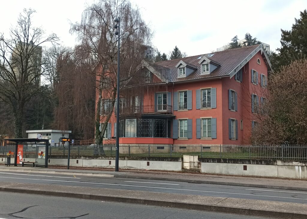 Juste en face, nous découvrons une maison plus imposante, celle du Baron Édouard de Chabaud Latour dont la famille est originaire du Gard. L’avenue, bien connue à Montbéliard et ses environs, longe le stade Bonal jusqu’à cette demeure qui naturellement porte son nom. Édouard rencontra Albert Roux dans les cercles protestants de Paris, ils se lièrent d’amitié et il tomba amoureux de Sophie, la fille d’Albert qu’il épousa en 1856. Voilà la raison pour laquelle, le baron est venu vivre à Montbéliard. Cette maison, construite en 1868, comporte un escalier majestueux et une verrière remarquable. Elle est aujourd’hui occupée par l’Hôtel du Département. A côté on peut encore voir les écuries.