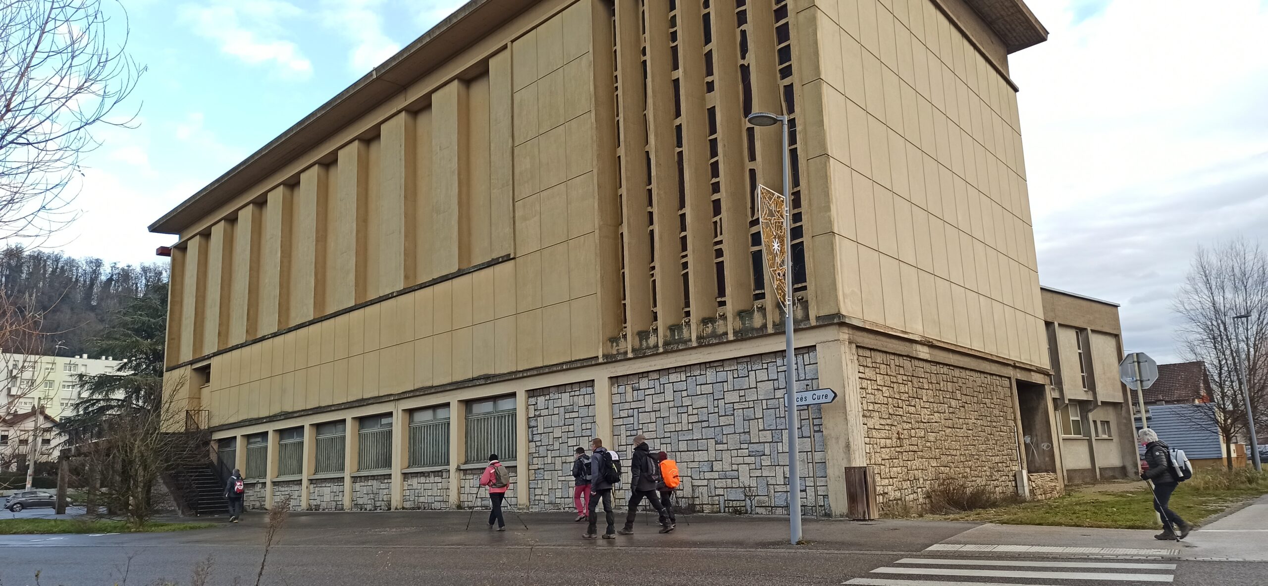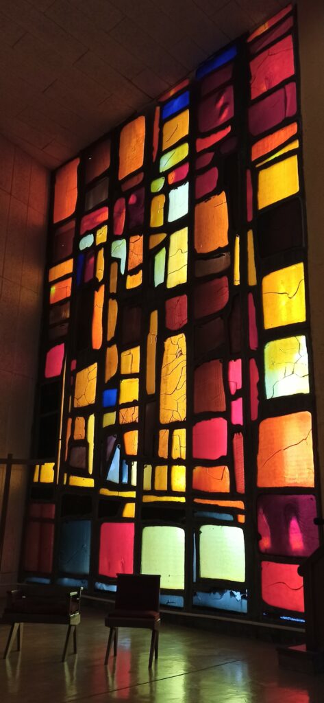Cet édifice construit par Marcel Lods disciple de Le Corbusier est réalisé en 1953. Grâce au mur de lumière en verre de différentes couleurs, l’intérieur est très lumineux. Les bancs ainsi que les sièges des prêtres ont été dessinés par l’architecte. Les stations du chemin de Croix sont représentées par des céramiques réalisées par l’artiste ukrainien  Jean Olin.