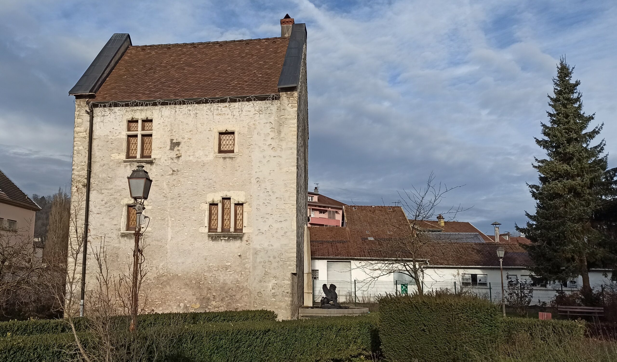 Après cette visite très intéressante, nous découvrons la Maison du Prince qui date du début du XVIe siècle. Il y a peu d’informations sur cette maison à part dans le livre ¨Les mémoires de la baronne d’Oberkirch¨ qui la mentionne comme une annexe du château d’Étupes, aujourd’hui disparu. Remarquer la demi-fontaine accolée à la façade avec 2 griffons.