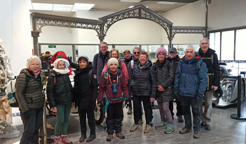 On pénètre à l’intérieur du musée inauguré en 1988 retraçant l’aventure industrielle de Peugeot commencée en 1810.  Nous profitons de la présence du Père Noël dans sa voiture, qui sur le secteur abandonne ses rennes quelques heures lors de la livraison des cadeaux, pour immortaliser ce moment.