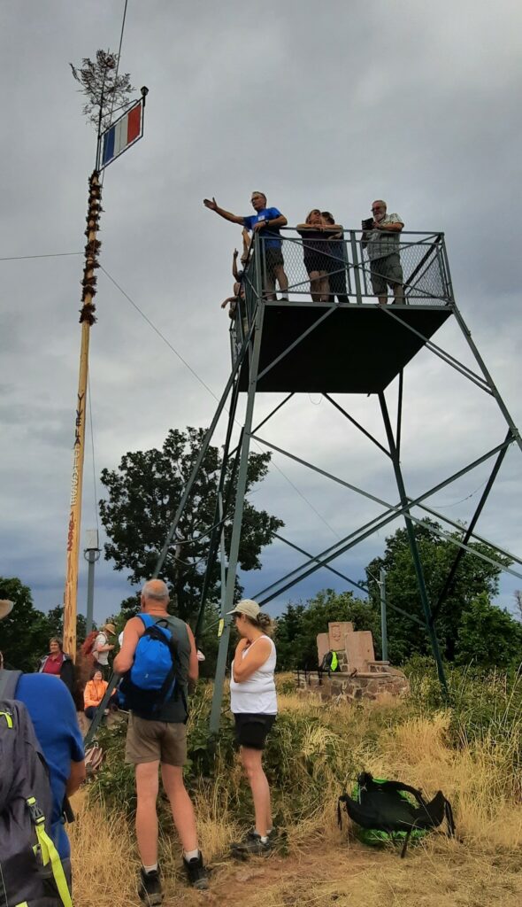 Un mat dressé au point le plus élevé arbore un drapeau français forcé à rester déployé. Une ‘‘Tour Eiffel’’ – c’est ainsi qu’est baptisée une plateforme couverte reposant sur quatre jambes inclinées –, propose aux téméraires de gravir une douzaine d’échelons tubulaires pour venir huit mètres plus haut admirer la plaine d’Alsace.