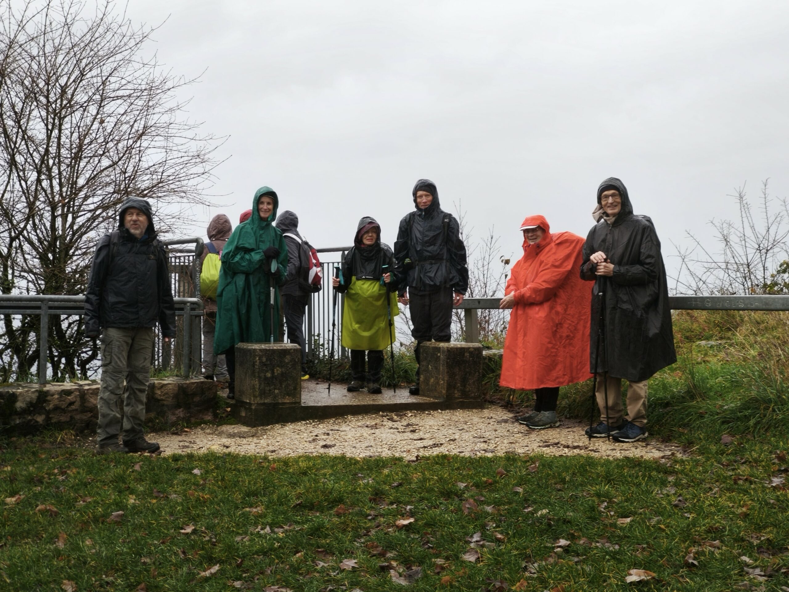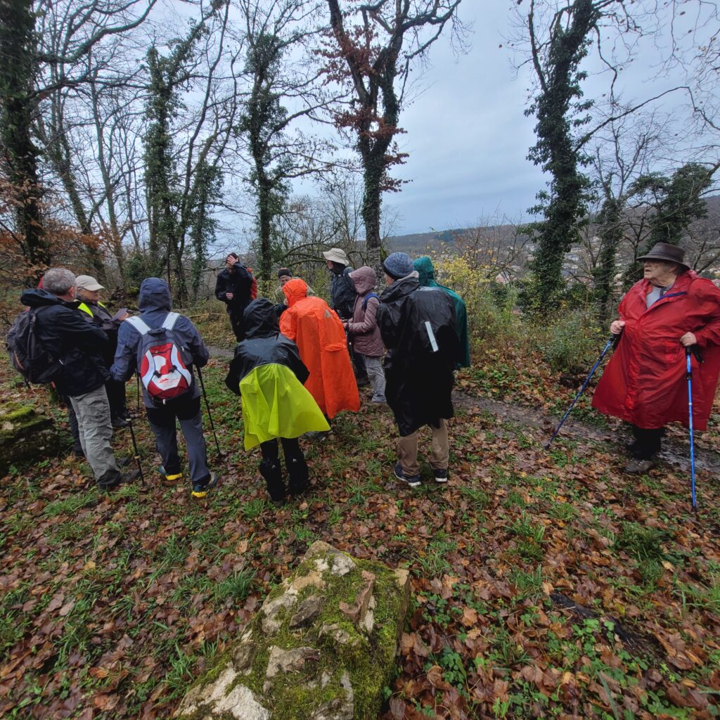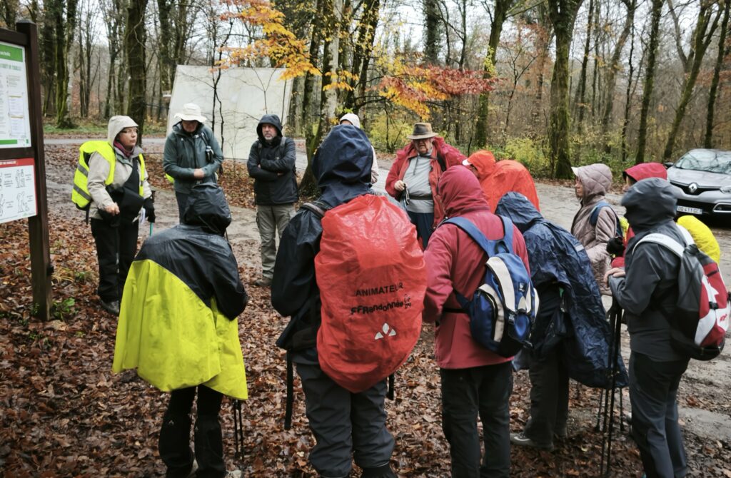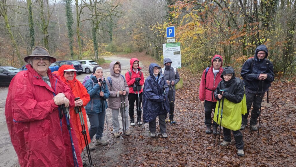 Alors, après une première bonne « saucée », à peine sortis des voitures, au parking des Grandes Baraques, nous voilà tous encapuchonnés et prévenus : la journée s’annonce… humide !!!
