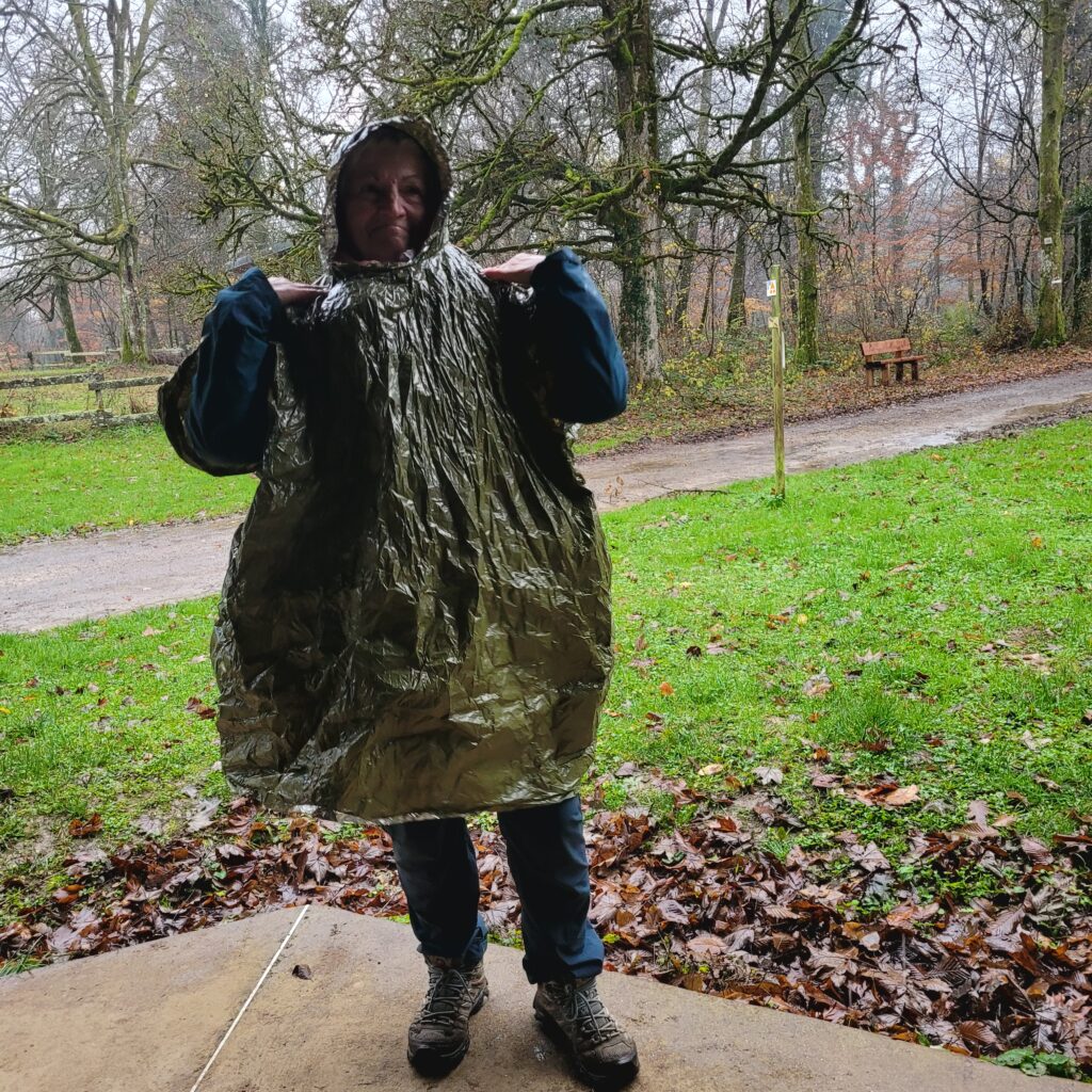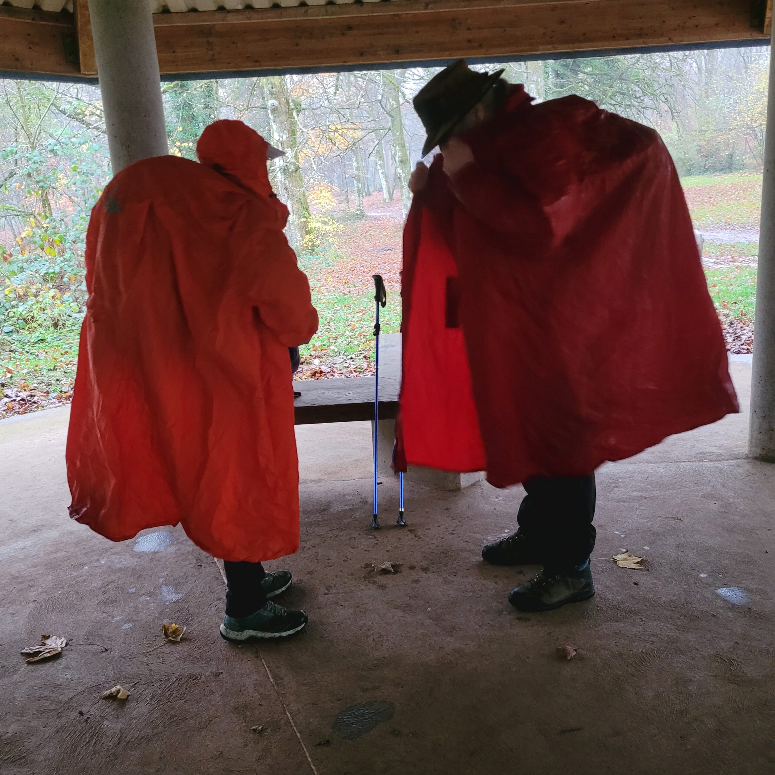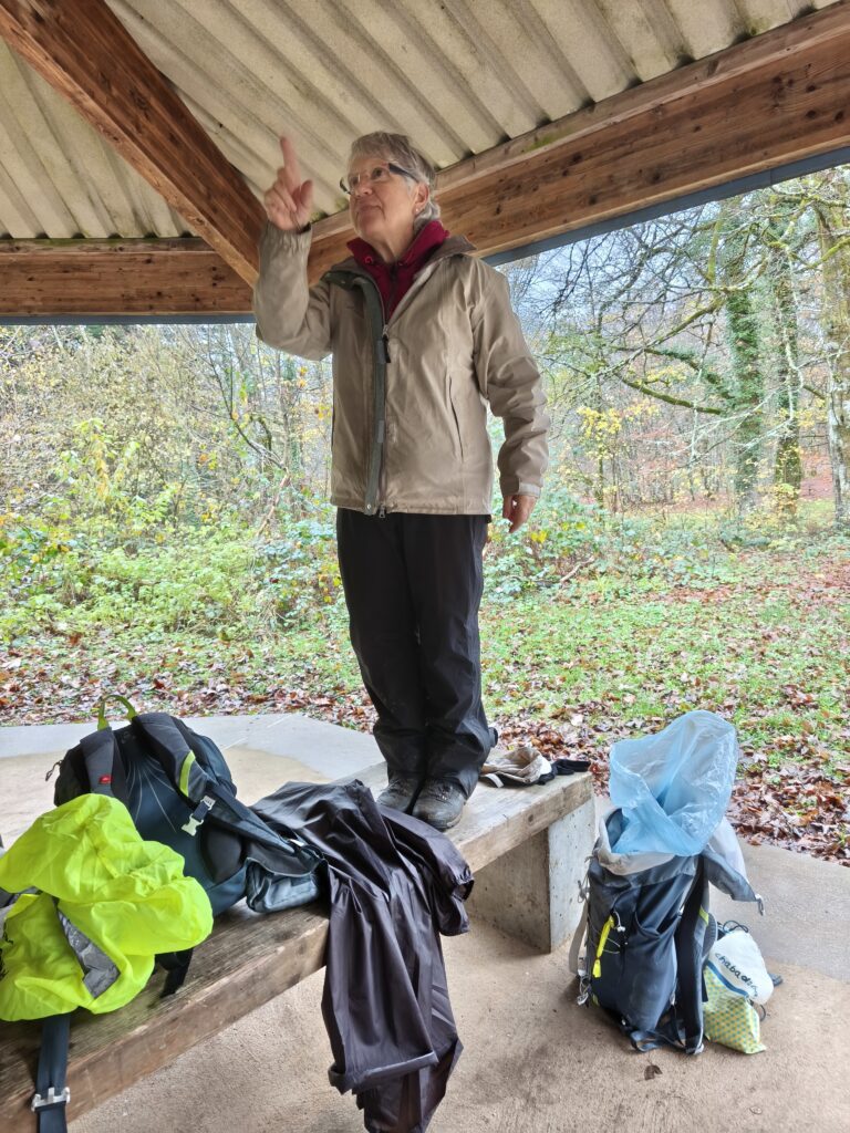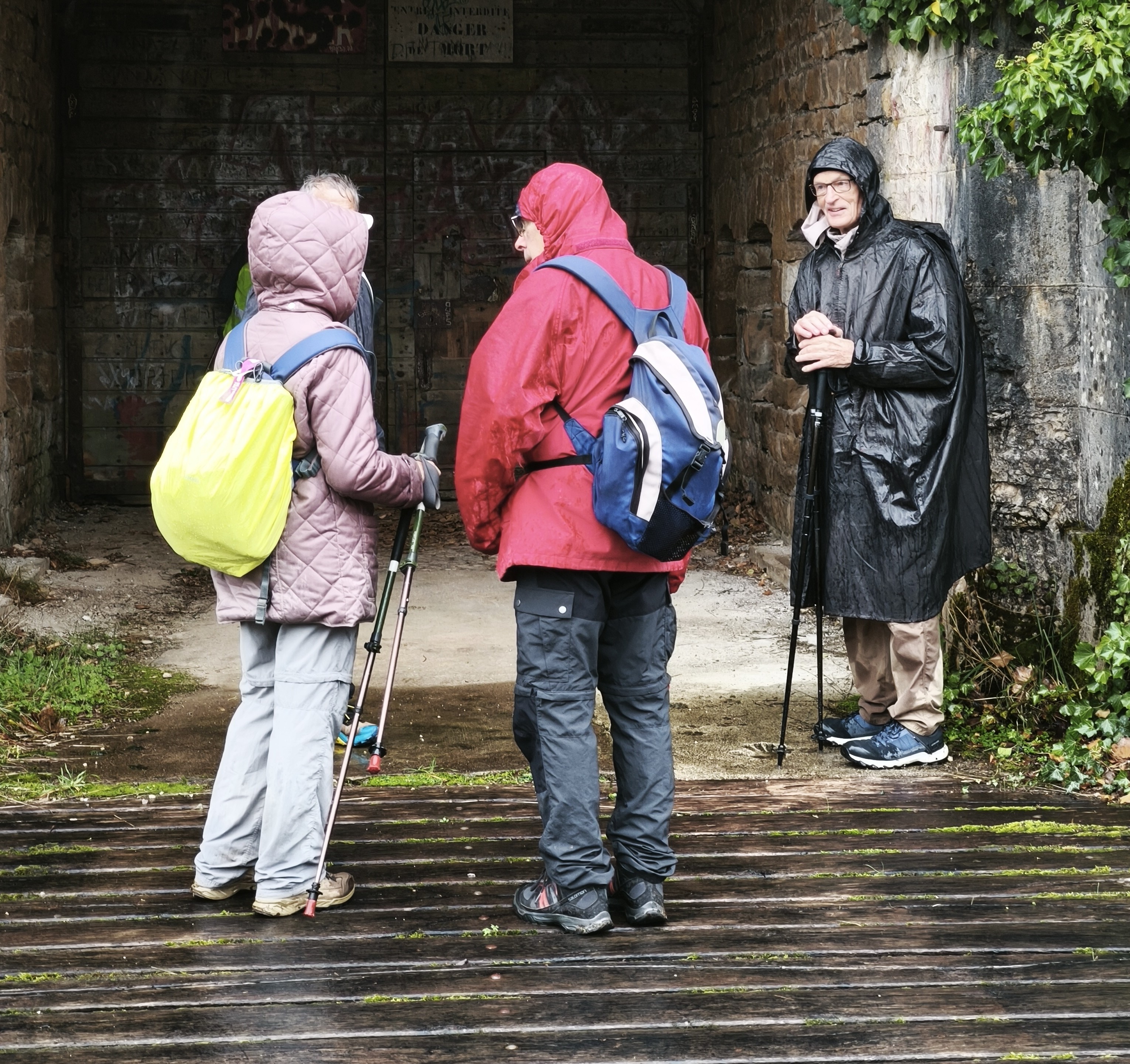 Alors, après une première bonne « saucée », à peine sortis des voitures, au parking des Grandes Baraques, nous voilà tous encapuchonnés et prévenus : la journée s’annonce… humide !!!