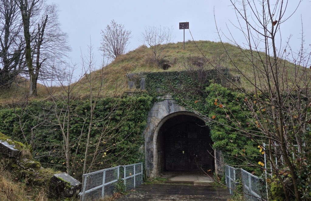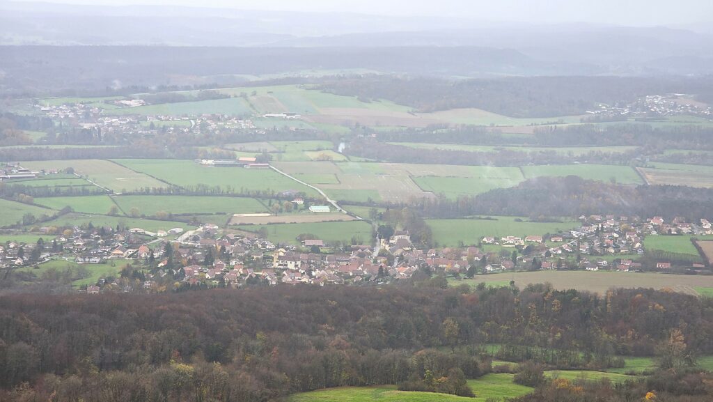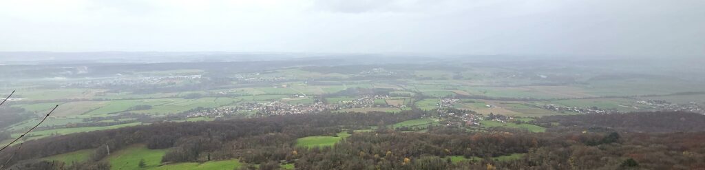 Première étape, nous passons sous l’autoroute A36 par un tunnel, pour monter au Fort de la Dame Blanche où nous avons une belle vue nuageuse sur la vallée de l’Ognon. Et même qu’on peut voir Venise !…