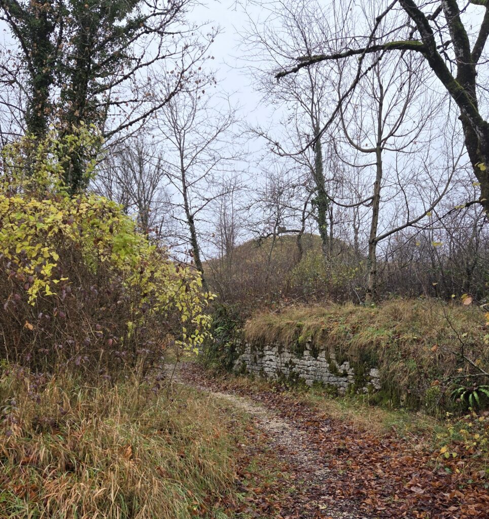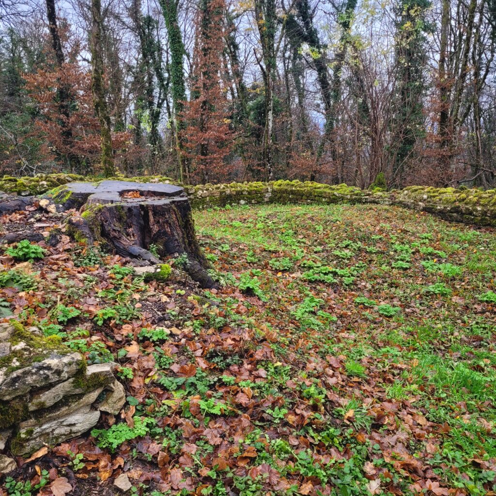 La descente se fait par la route forestière en crête jusqu’au-dessus du village de Tallenay où nous trouvons les vestiges de la chapelle Saint Gengulf, ancienne chapelle du village qui se trouvait sur cette hauteur.