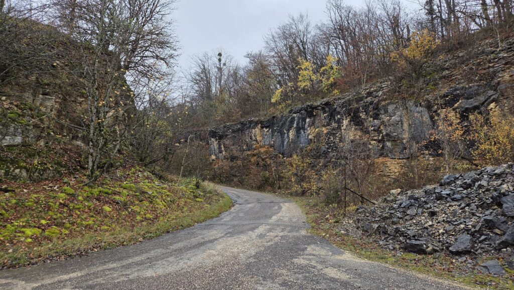 Avant le pont sur l’autoroute, nous sommes passés devant une ancienne carrière de pierres, bleu/ocre qui ont servi à la construction des immeubles de Besançon et ont donné cette couleur typique au centre-ville.