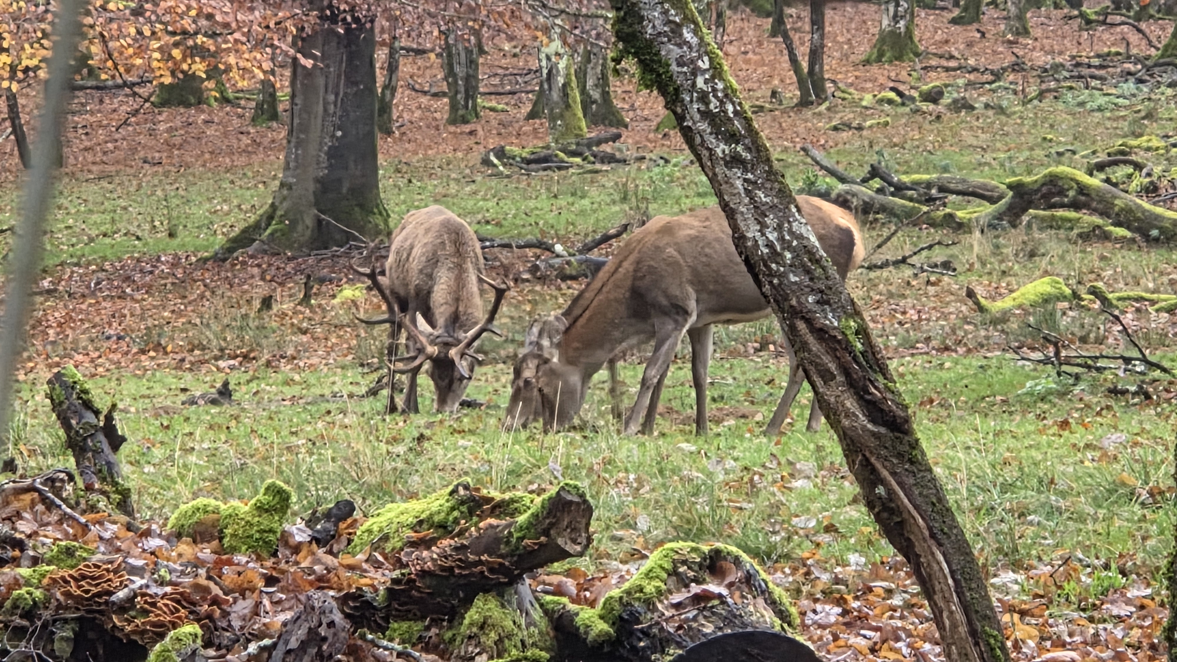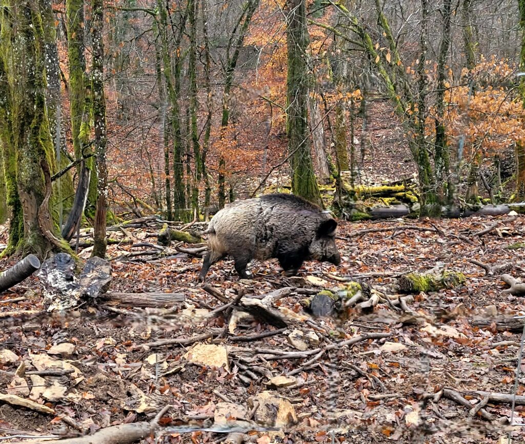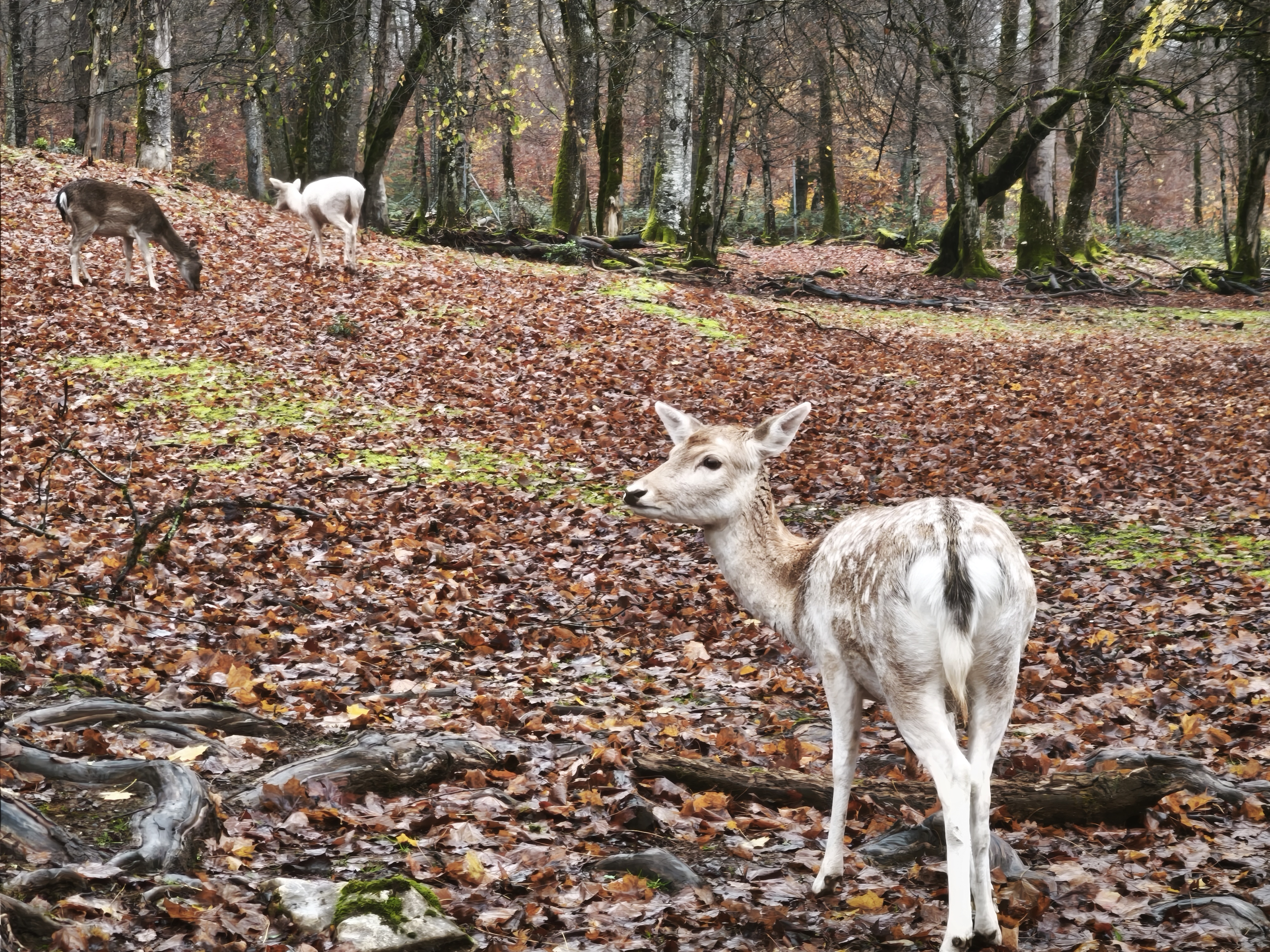 La pluie avait cessé. Les animaux eux aussi, en ont profité pour sortir de leurs abris et nous avons pu les voir de près : les sangliers, le grand cerf et son troupeau de biches, le daim et ses daines. De beaux et grands panneaux nous ont instruits sur chaque espèce.
