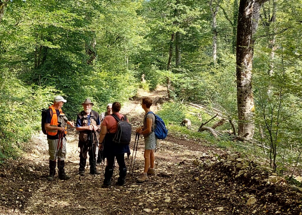 Le sommet du jour récompense les efforts fournis, nous repartons vers Blamont. La descente au sortir de la forêt nous amène à l’entrée d’une grande pâture direction la grotte de la Tante Airie.